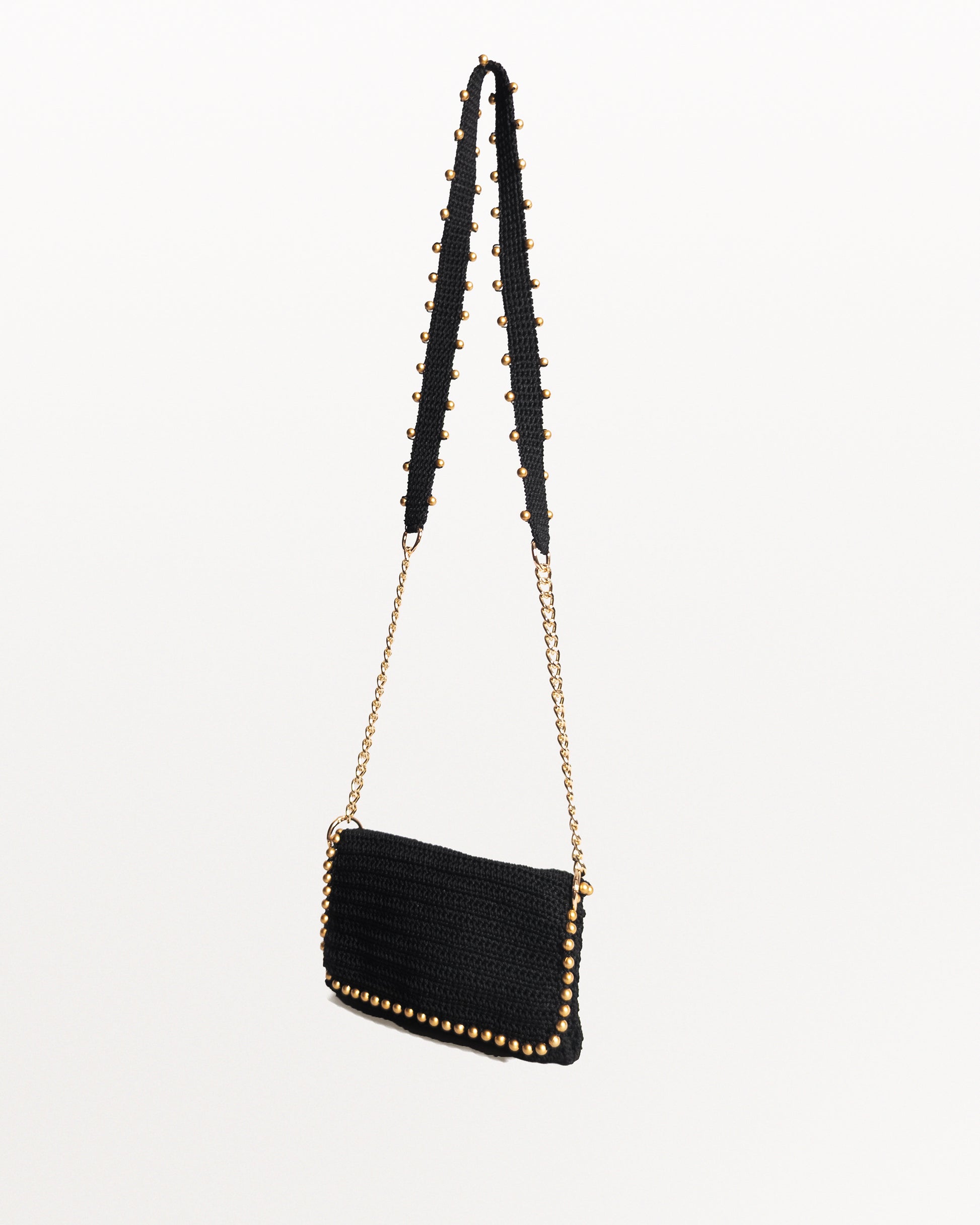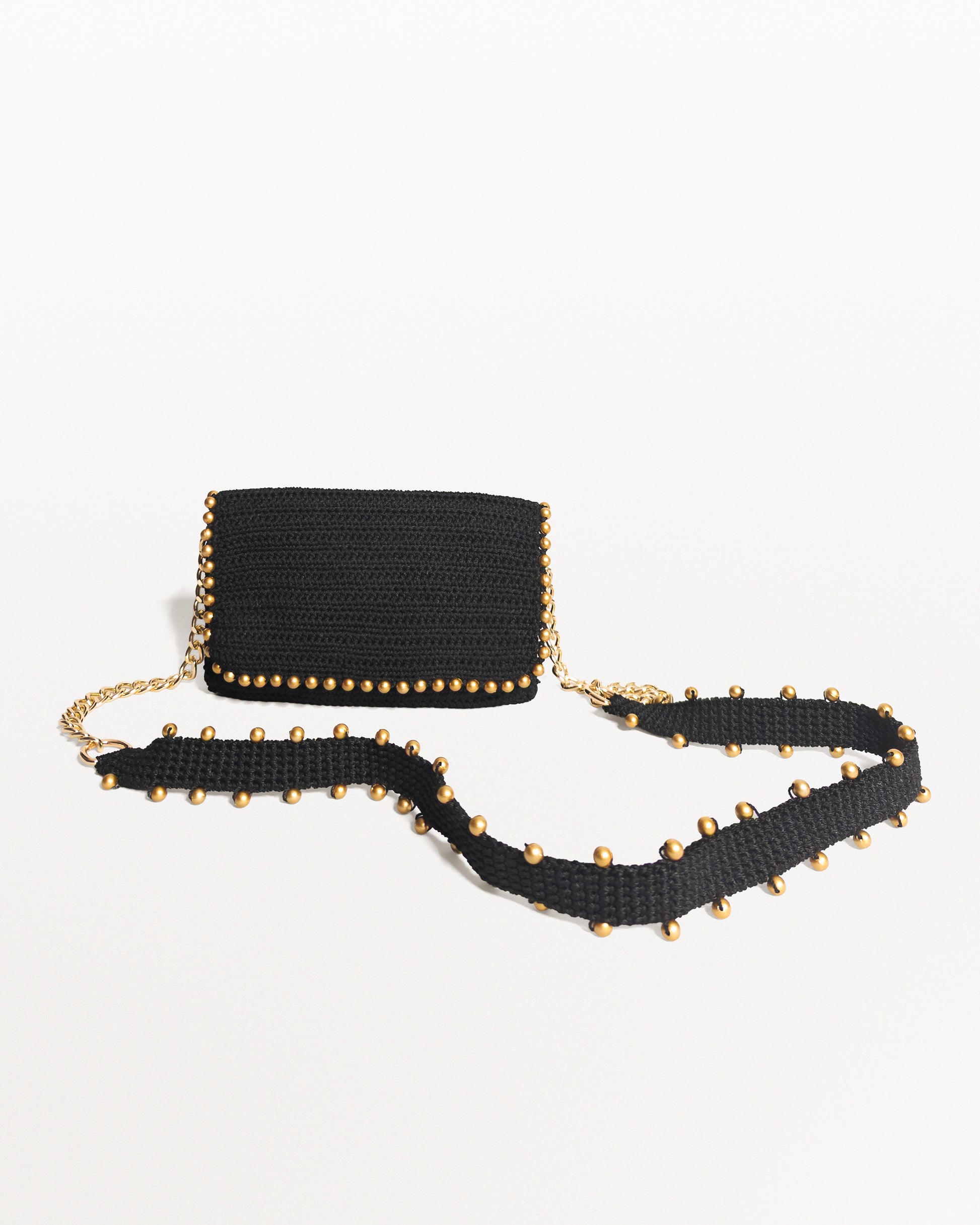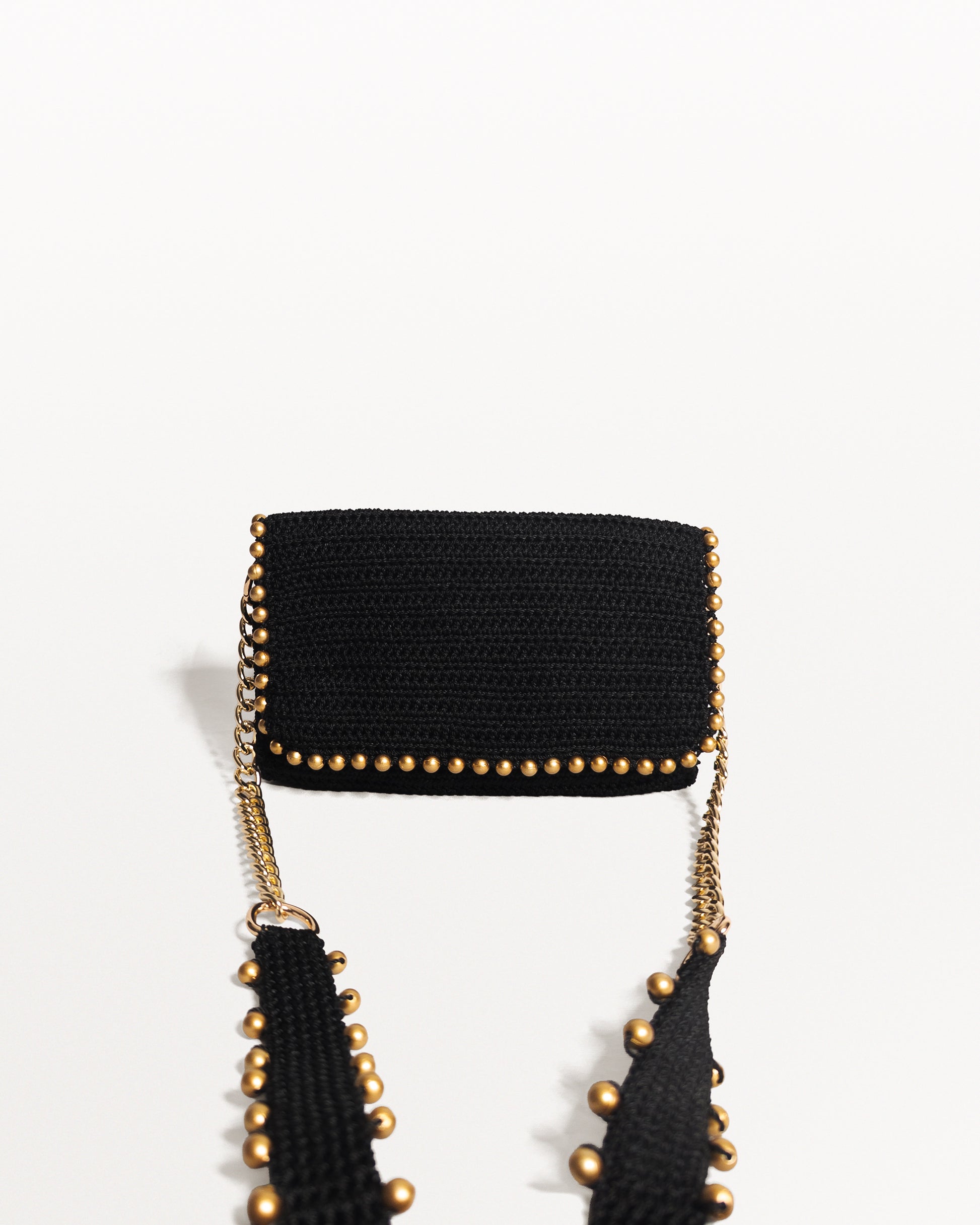 LINA is a handcrafted crochet sling that converts into a clutch with its detachable strap—made for everyday luxury, festive evenings, and cocktail nights. Designed in a compact rectangular silhouette with an envelope flap, Lina is finished with bead detailing along the flap edge and a beaded crochet strap paired with a metal chain for a refined, jewellery-like finish. With a hand-stitched lining and a secure magnetic closure, it’s extremely lightweight yet sturdy—easy to carry, effortless to style.