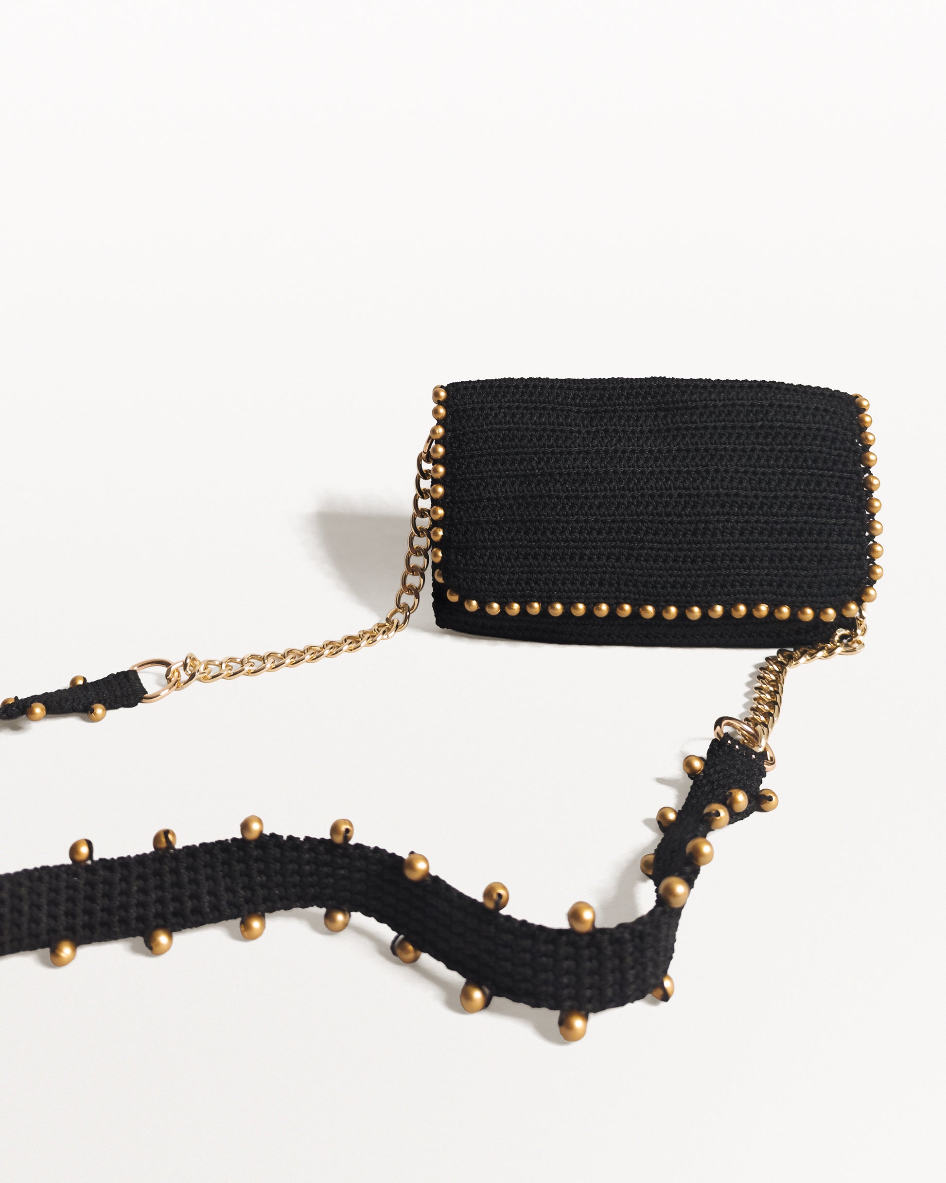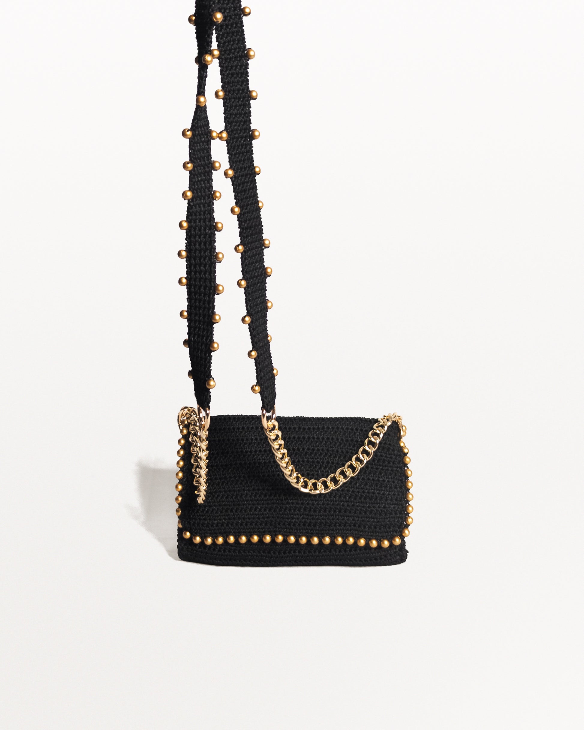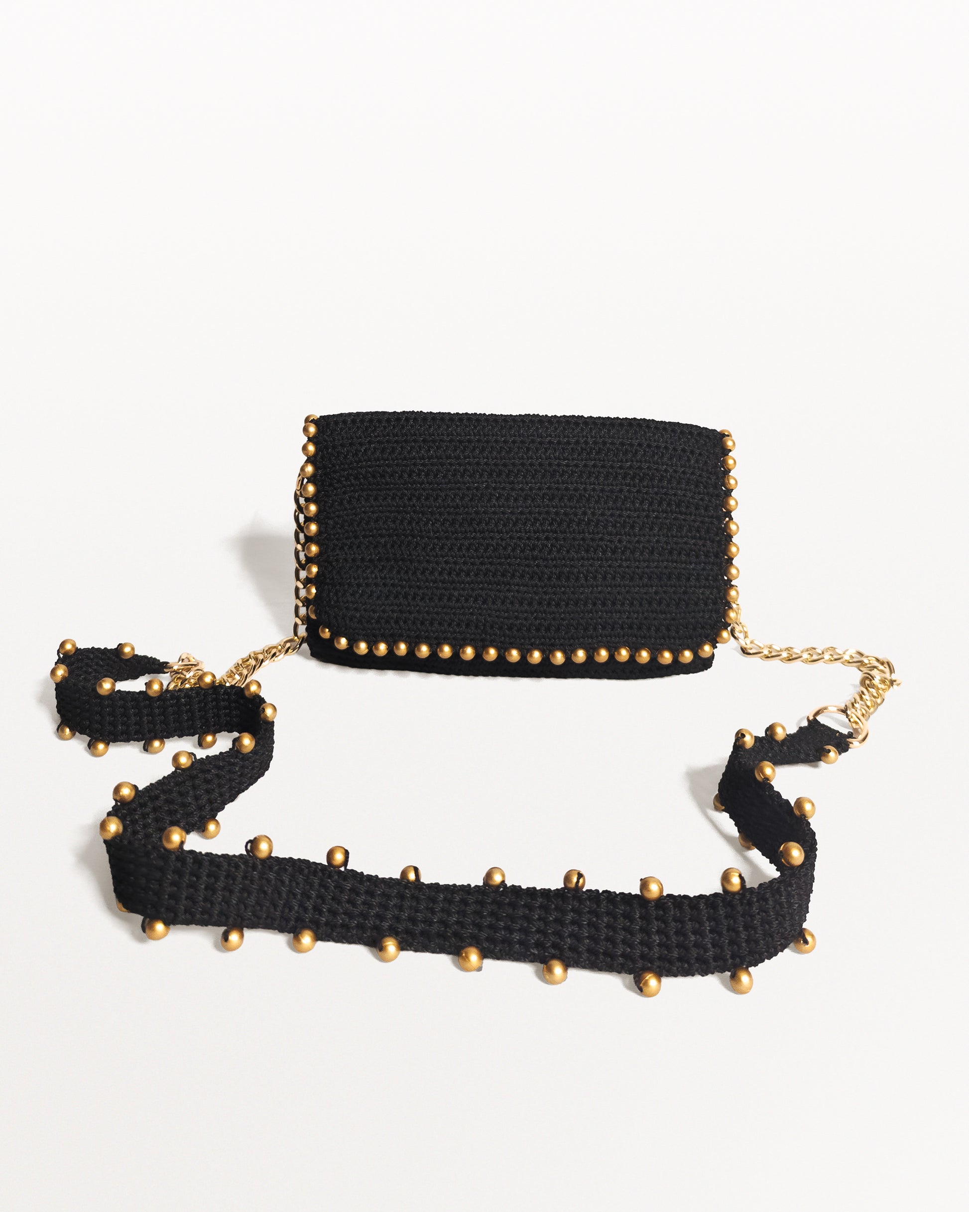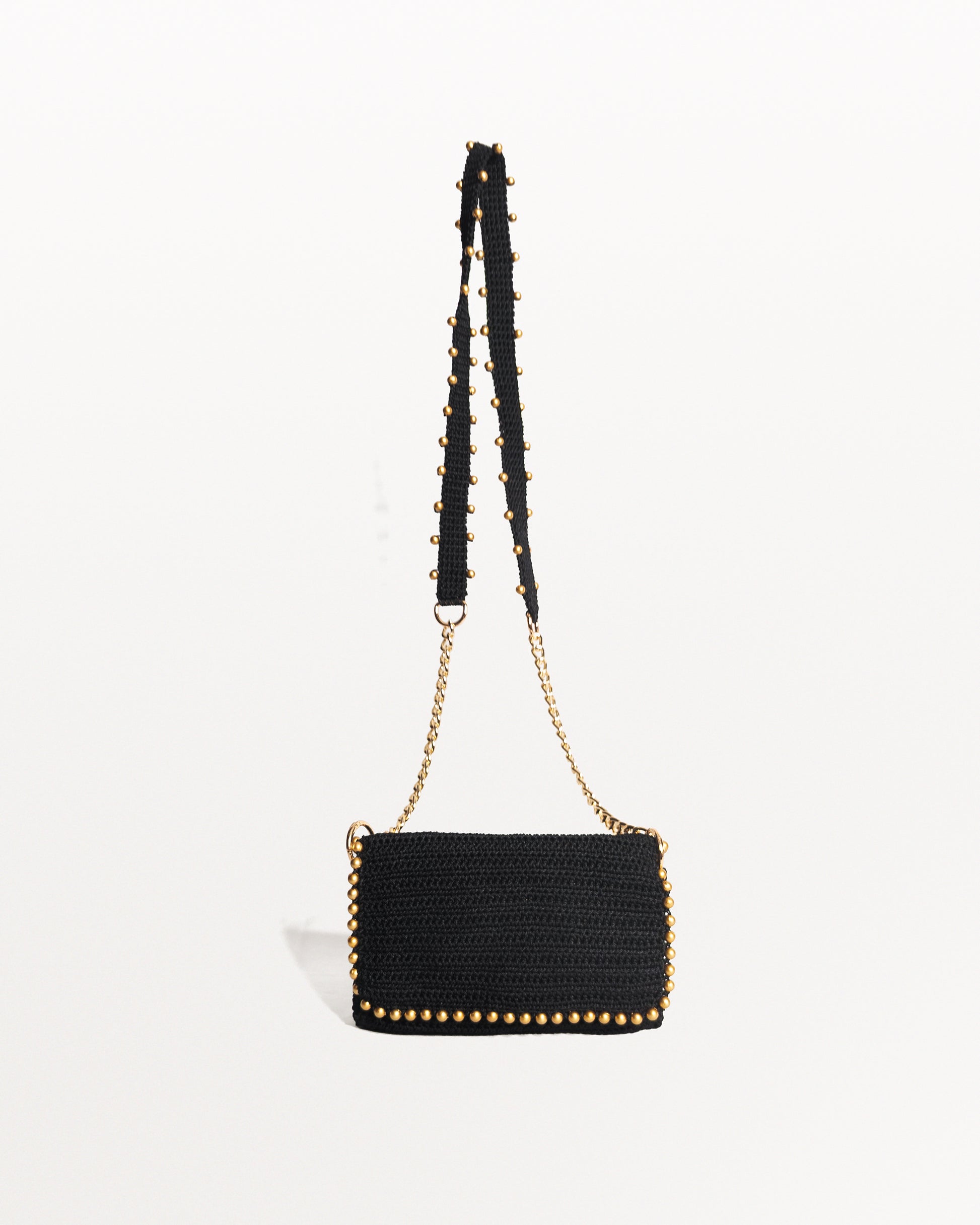 LINA is a handcrafted crochet sling that converts into a clutch with its detachable strap—made for everyday luxury, festive evenings, and cocktail nights. Designed in a compact rectangular silhouette with an envelope flap, Lina is finished with bead detailing along the flap edge and a beaded crochet strap paired with a metal chain for a refined, jewellery-like finish. With a hand-stitched lining and a secure magnetic closure, it’s extremely lightweight yet sturdy—easy to carry, effortless to style.
