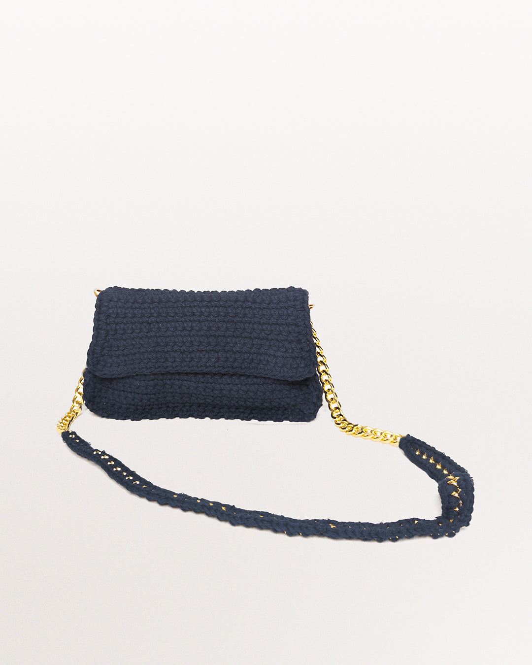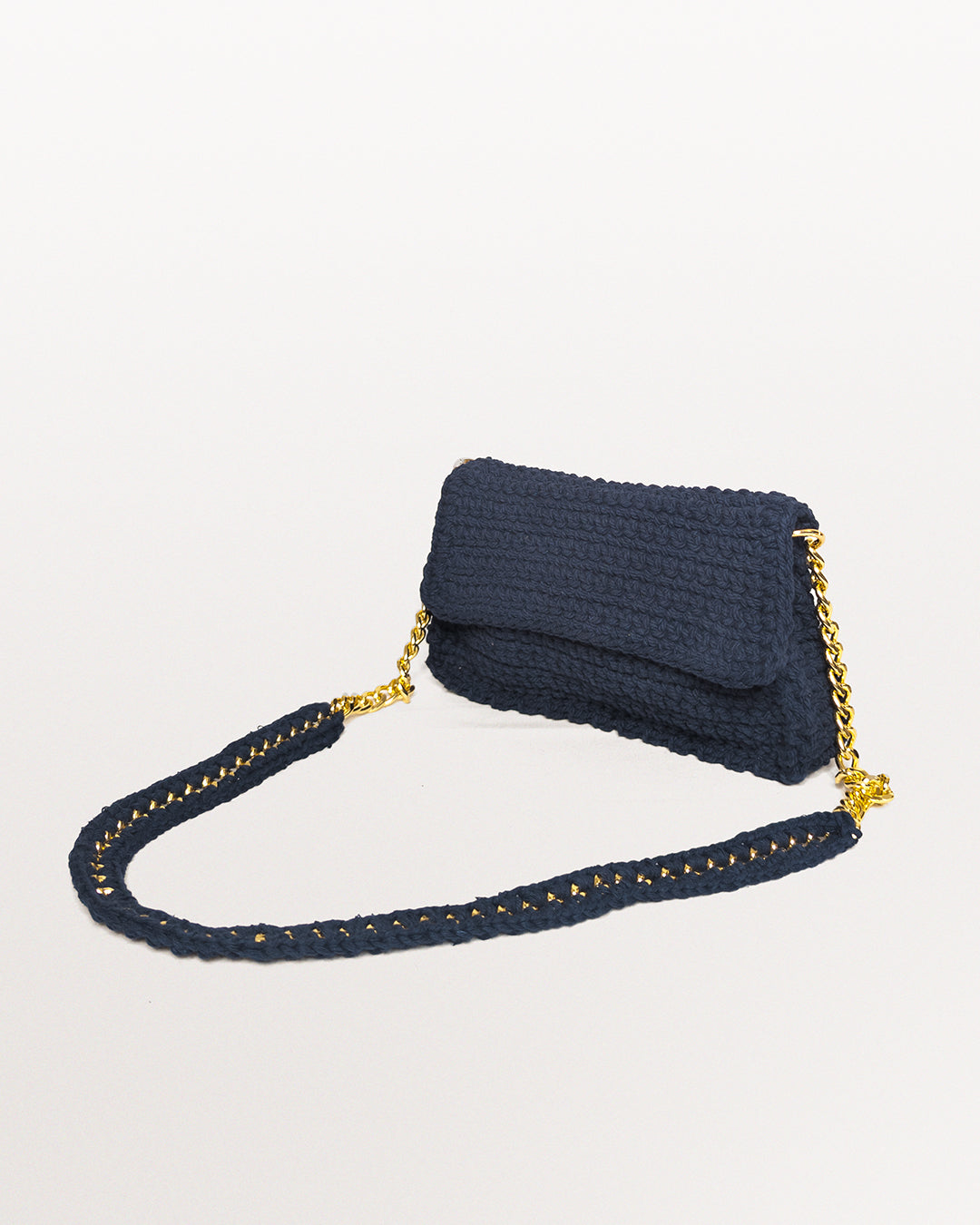 Vogue Bag in Navy, a hand-crafted modern accessory perfect for any occasion. This versatile sling bag is the ideal complement to both western and Indian wear, making it a stylish choice for parties and events. The deep navy color adds an elegant touch, while the intricate crochet design lends a unique and sophisticated flair. Crafted from high-quality cotton-poly yarn and hand-crocheted with precision, this exquisite crochet sling bag is a true work of art. Whether you're attending a formal wedding, an upscale soirée, or simply want to enhance your everyday style, this chic bag is the perfect choice. Its compact size ensures you can carry your essentials without compromising on elegance. Whether you're heading to a formal event or a casual outing, this crochet bag is sure to turn heads and elevate your look. Handcrafted with meticulous attention to detail, the Vogue crochet bag in navy is an essential addition to your accessory collection.